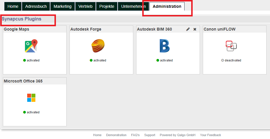 Synapcus kann in verschiedenen Fremdsoftware-Produkte als sog. AddIns oder als Apps verwendet werden. Hier handelt sich um eine Untermenge an Synapcus Features und Workflows die in der jeweiligen Drittanbieter-Plattform integriert werden können. So erlauben z.B. AddIns für Microsoft Outlook, Microsoft Office, Google Mail usw. Funktionen aus Synapcus direkt in der Benutzeroberfläche der jeweiligen Fremdanwendung zu nutzen. Sie können z.B. Synapcus-Kontakte direkt in Outlook verfassen, oder Excel-Dokumente direkt in Synapcus abspeichern.