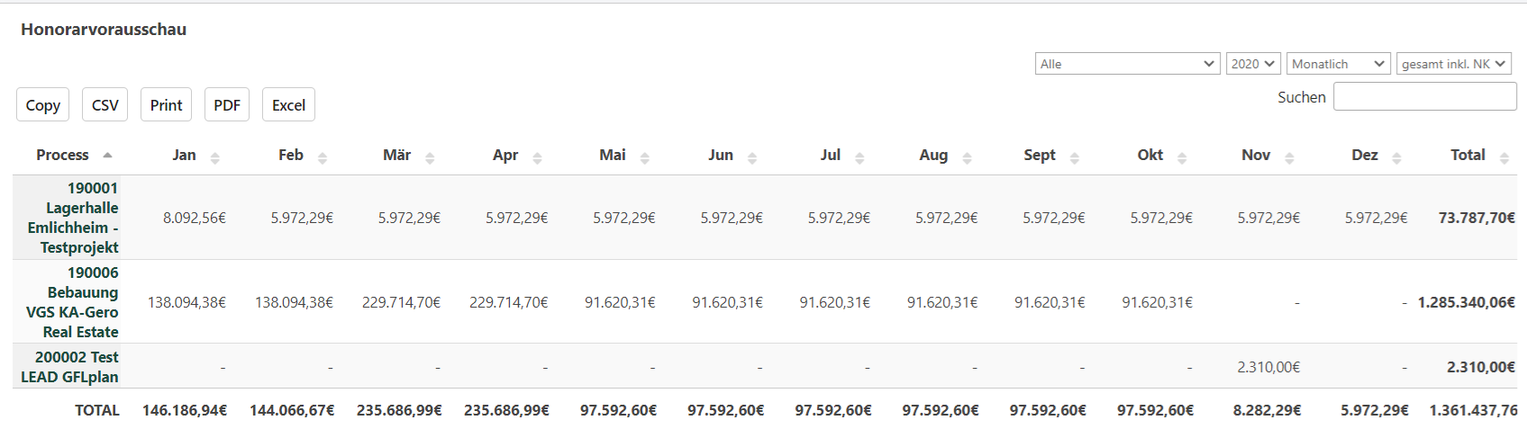 Durch die zeitliche Gruppierung der Honorare können Unternehmen besser abschätzen, wann sie mit bestimmten Einnahmen rechnen können. Das ist besonders hilfreich, um Engpässe oder finanzielle Herausforderungen frühzeitig zu erkennen und entsprechende Maßnahmen zu ergreifen.