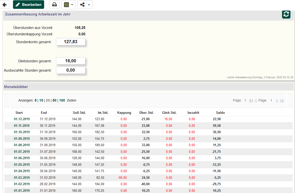 Ausbezahlte Std. | Die Anzahl der Überstunden, die der Mitarbeiter im laufenden Jahr bisher ausbezahlt bekommen hat. |